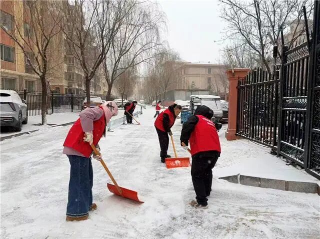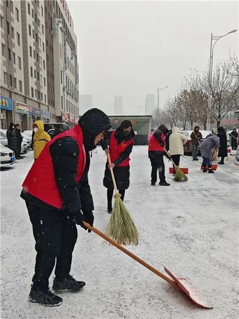 自治区党委组织部、新城区融媒体中心等单位干部职工到包联的丁香北路街道阿尔泰社区,与街道社区干部一起参与清雪除冰志愿服务,营造畅通安全出行环境。