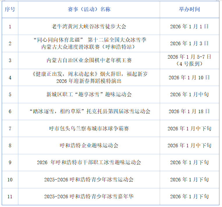 1月的呼和浩特将体育竞技