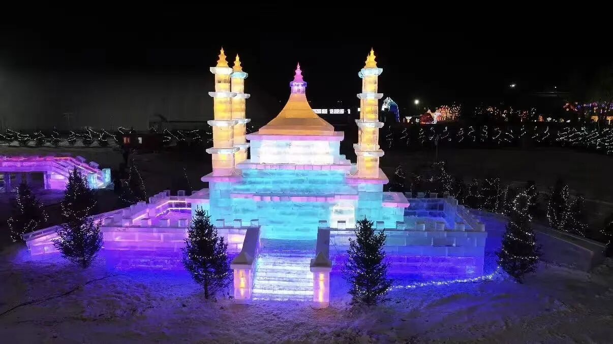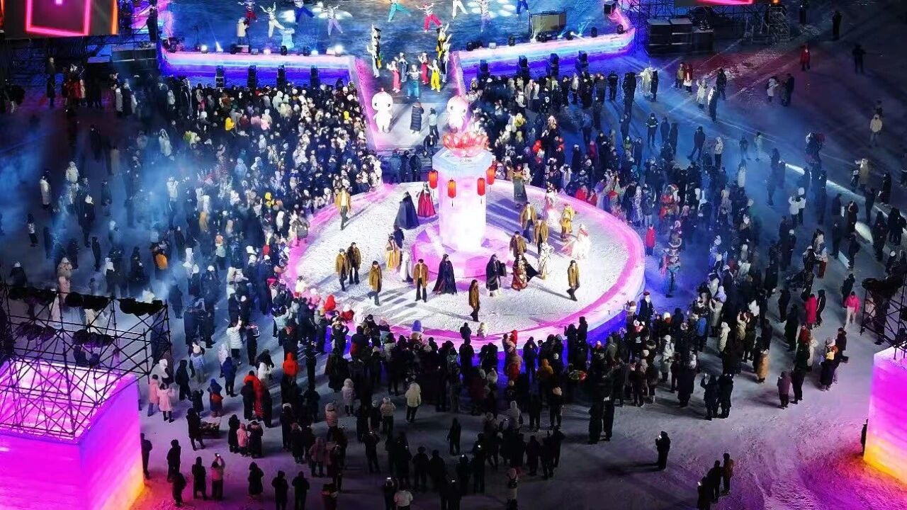 用巨型冰雕群和非遗自贡彩灯