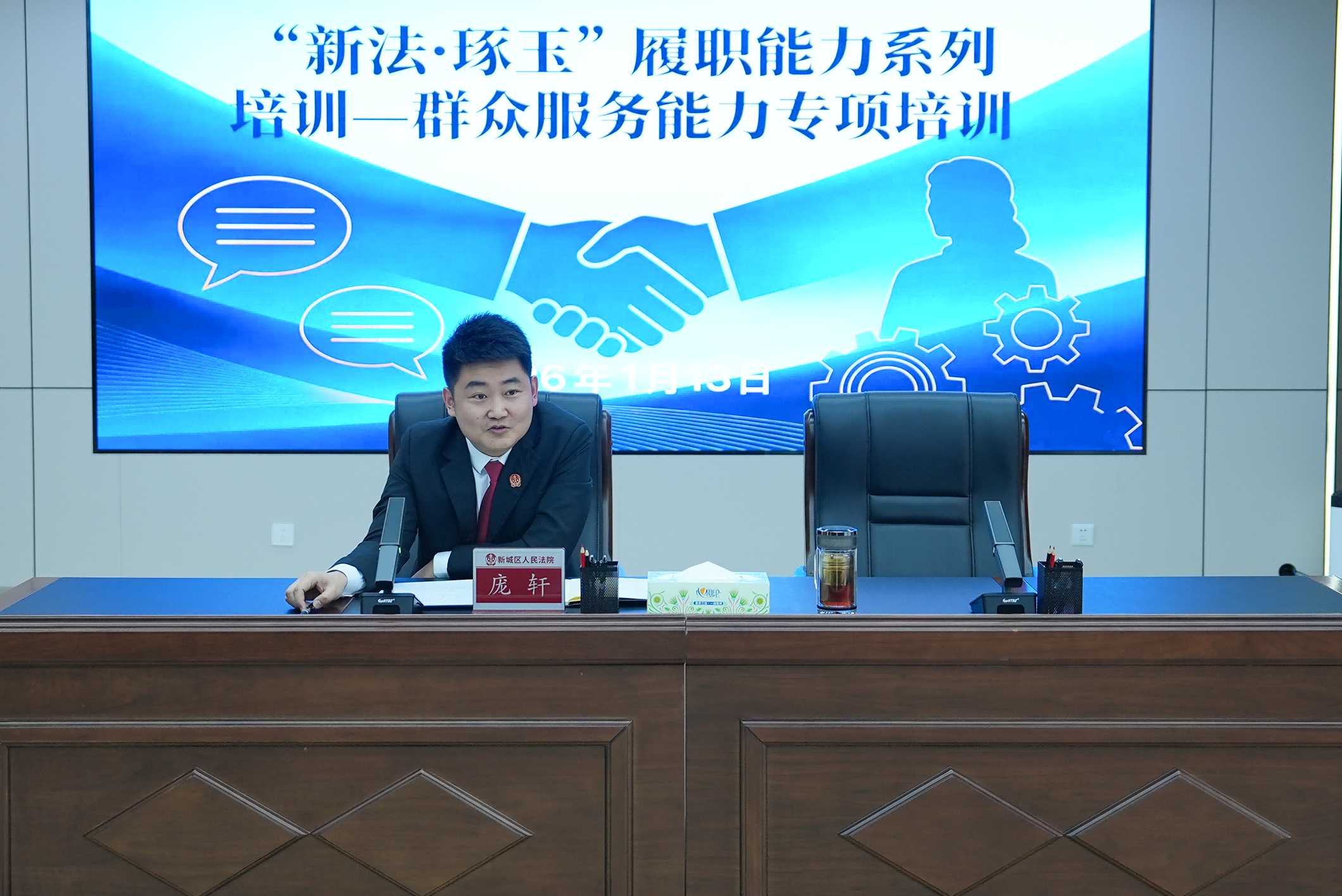 为进一步增强青年干警联系群众、服务群众意识,提高矛盾纠纷化解水平,深化“新法·琢玉”青年干警培育品牌打造,2026年1月13日,呼和浩特市新城区人民法院开展“新法·琢玉”提升履职能力系列培训的第一场专项培训。