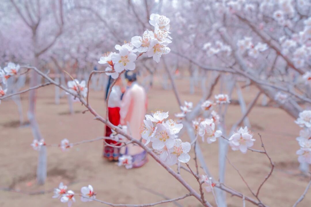 想看更壮阔的花事,就往城外走走。乌素图的杏花谷,一到四月中下旬,漫山遍野便被一层淡粉色的烟雾笼罩。杏花初开时是粉红色,逐渐变淡,落花时则成了纯白,有一种从喧闹走向宁静的美。