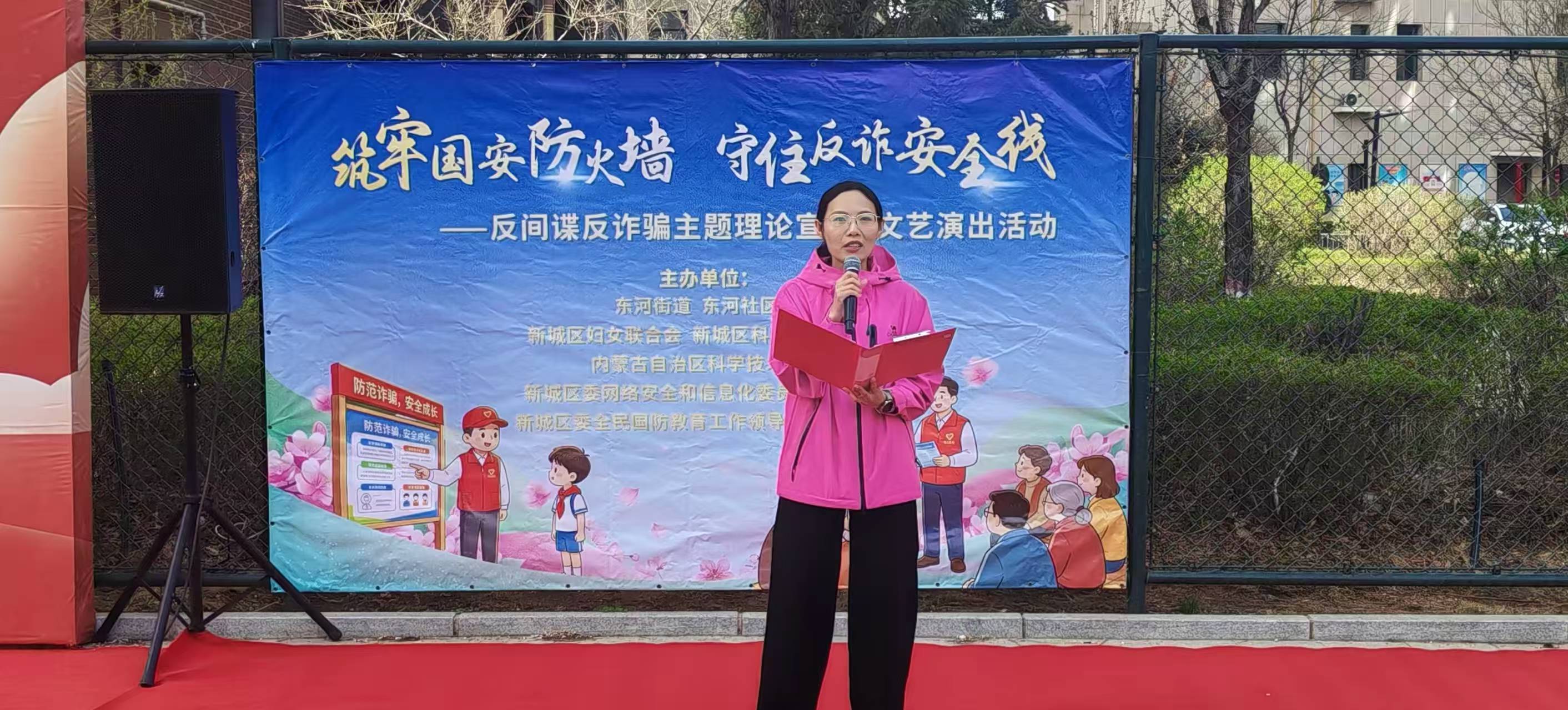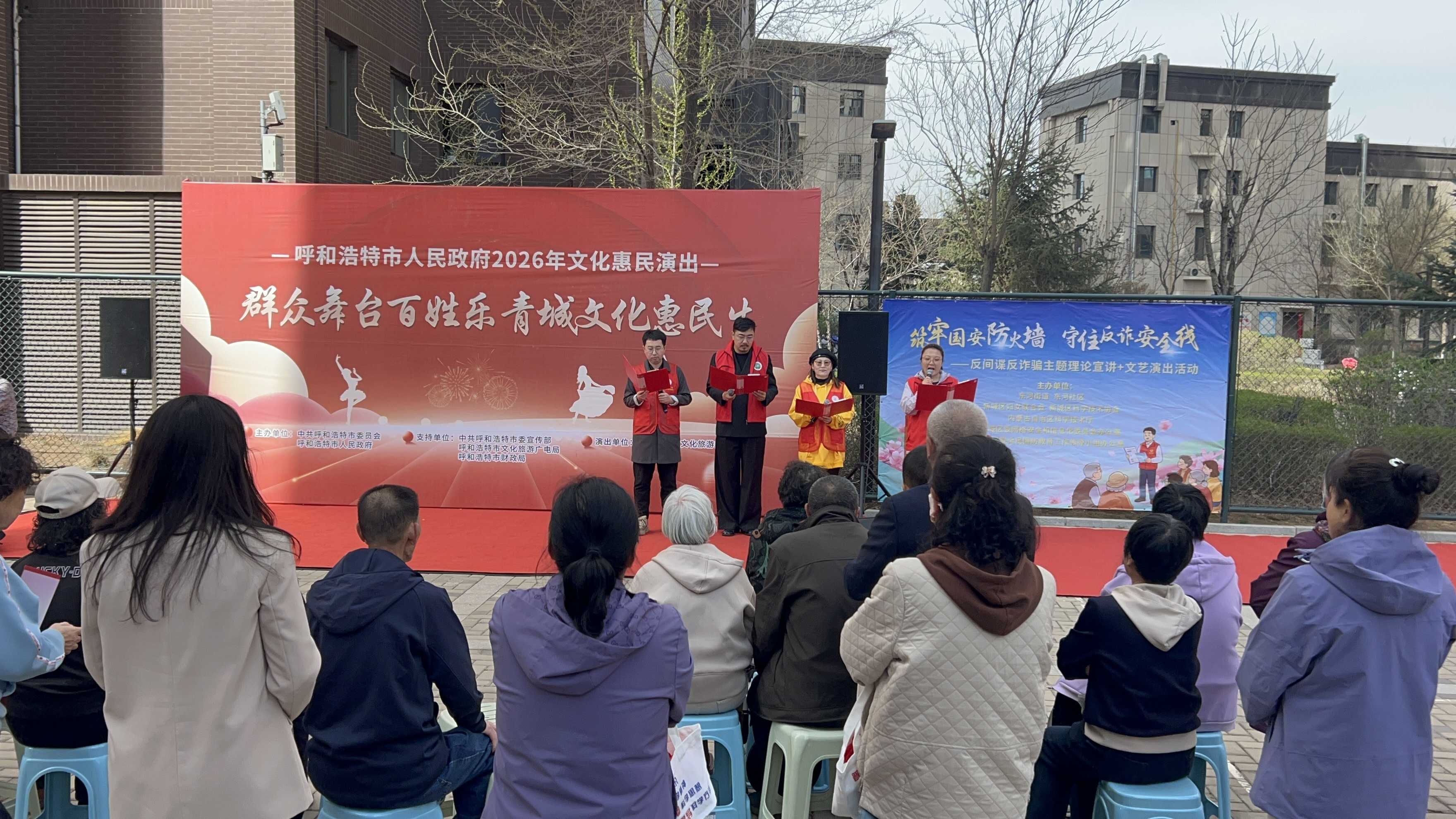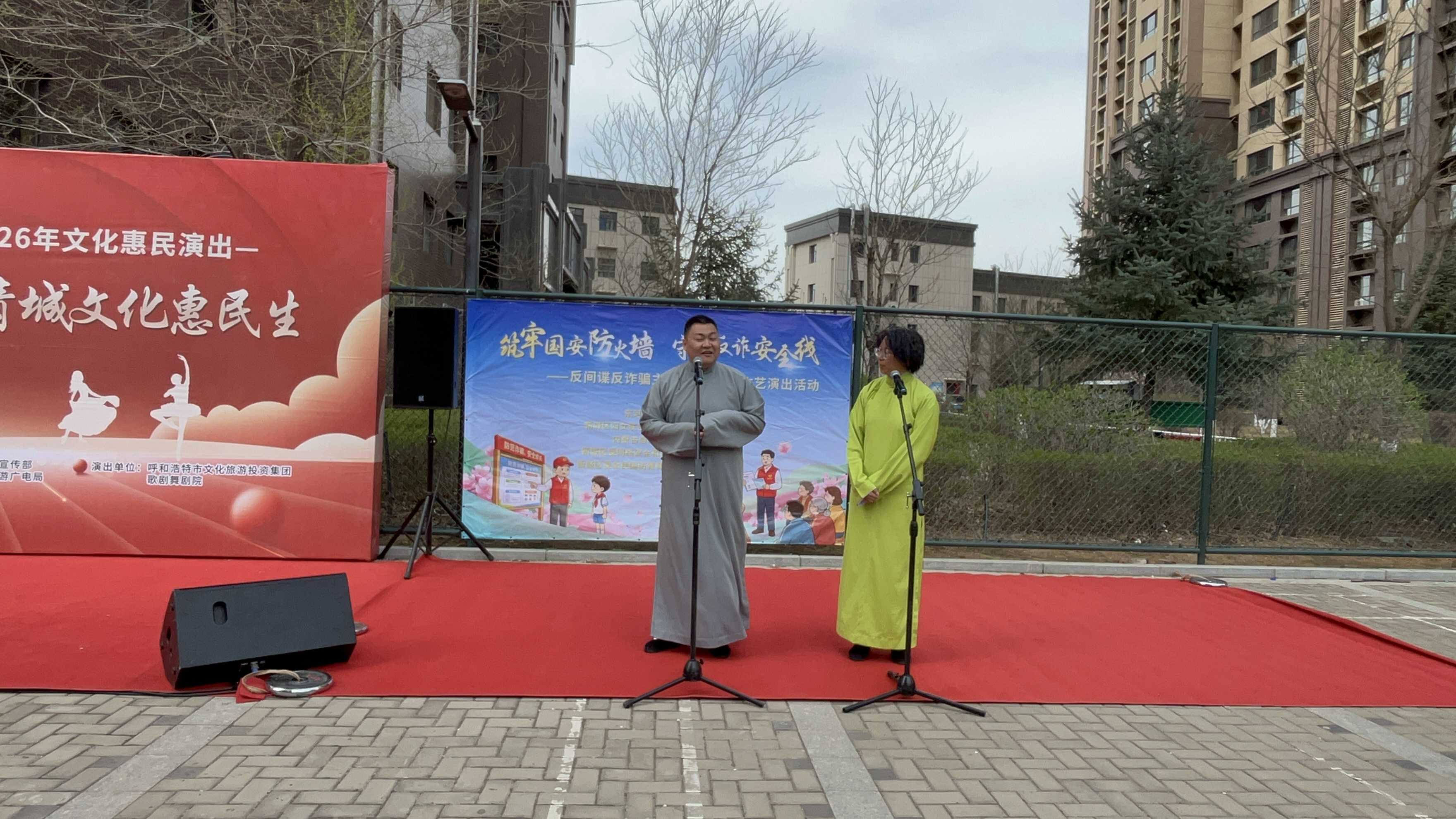 4月15日上午,呼和浩特新城区舜和慢城小区的羽毛球场一改往日的运动节奏,早早聚满了闻讯赶来的居民。第十一个全民国家安全教育日当天,新城区委网信办、新城区全民国防教育工作领导小组办公室联合东河街道文明实践所、东河社区文明实践站,把一场反间谍、反诈骗主题的宣讲演出直接搬到了居民家门口的球场上。