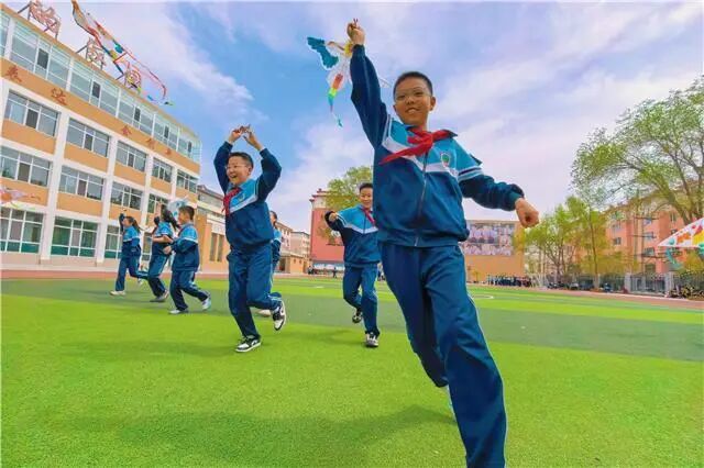 绘制完成后,孩子们奔向操场放飞亲手制作的风筝。奔跑、放线、调整,当一只只纸鸢乘风而起、扶摇蓝天,现场爆发出阵阵欢呼。