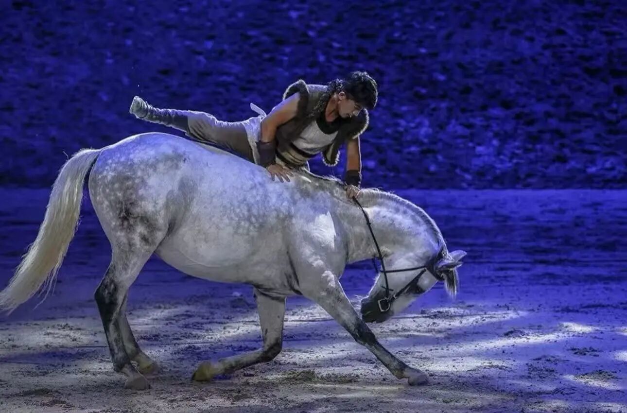 骑手与骏马默契无间,马上空翻、马背叠罗汉等高难度特技,惊险又惊艳;
