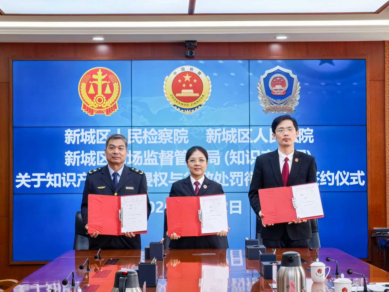 与区市监局、区检察院举行建立知识产权民事侵权与行政处罚衔接机制签约仪式,立足各单位职能职责定位,围绕知识产权行政保护、司法审判、检察监督等工作,建立起知识产权协同协作保护机制,构建线索移送、信息共享、联合研判、普法宣传、业务交流等全方位协作体系,进一步打通知识产权行政保护与司法保护衔接通道,凝聚起执法司法合力,切实实现知识产权保护全链条保护。