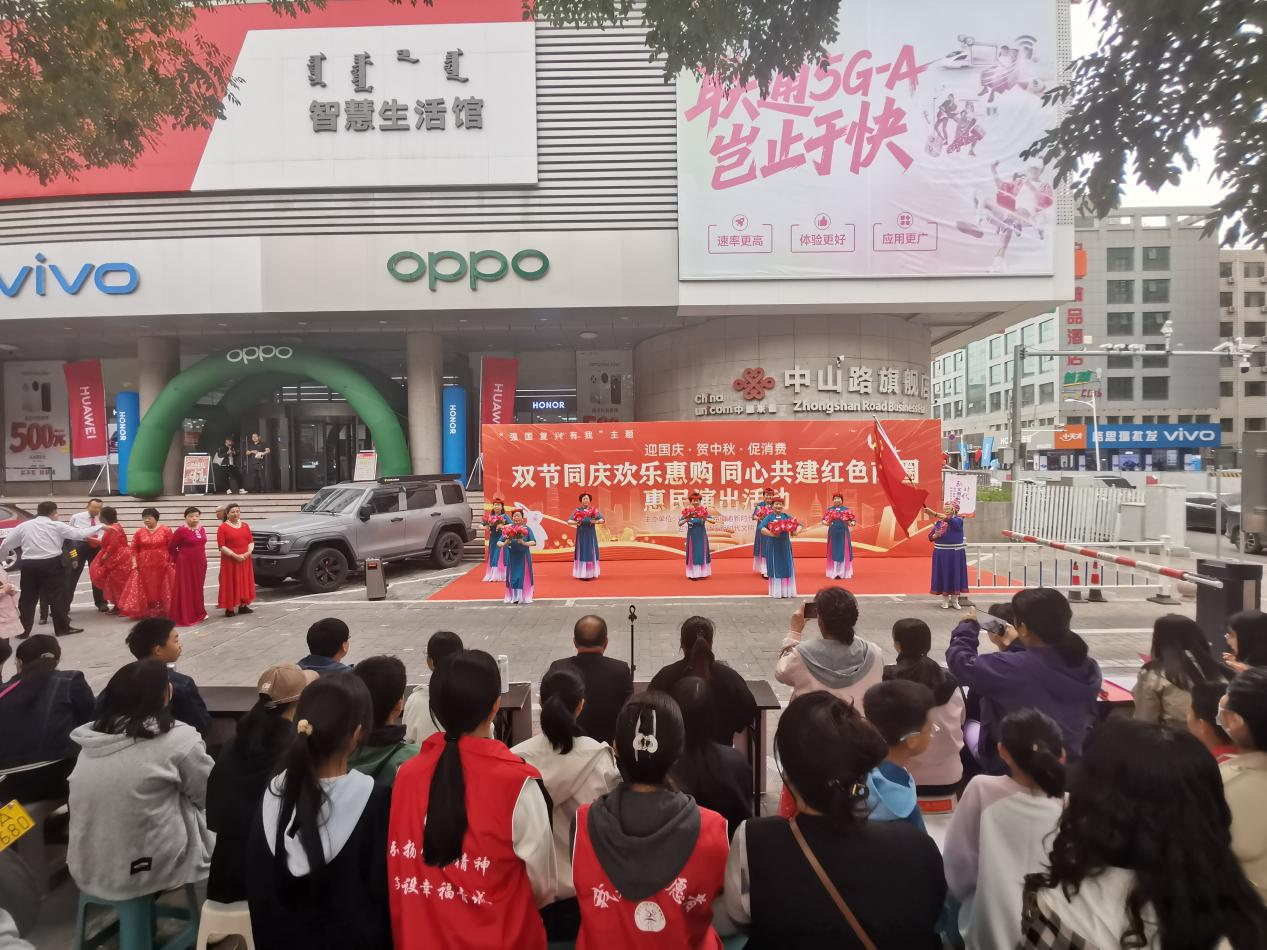 为庆祝中秋节与国庆节,锡林郭勒北路街道新时代文明实践所携手迎宾南路社区新时代文明实践站,在辖区内共同举办了“迎国庆·贺中秋·促消费 双节同庆欢乐惠购 同心共建红色商圈”惠民演出活动。整场演出以深沉的家国情怀为主线,通过形式多样、内容丰富的文艺节目,不仅营造出欢乐祥和的节日氛围,也进一步增强了辖区居民的凝聚力,抒发了大家对祖国的无限热爱与美好祝福。