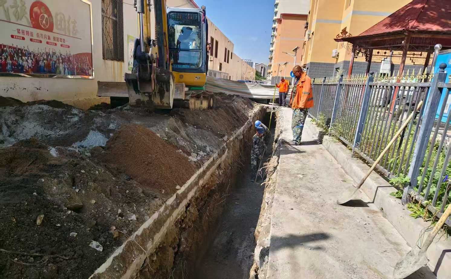 一是巧设隔离通车道,畅通居民出行路。针对小区院门前过道社会车辆占道停放、影响通行的“顽疾”,社区实地勘察后,召集包联党员、网格员、热心居民共同商讨,确定“安装隔离栏+划分双车道”的整改方案,协调交警、供电部门及物业公司施工队,完成隔离栏安装、废弃铁房与电线杆移除工作,彻底打通出行“堵点”。二是改造管网除隐患,长效服务惠民生。针对小区楼房区污水管网老化腐蚀、污水倒灌的民生痛点,由街道牵头、社区协调,物业公司施工队对排污管网进行全面改造。施工队通过高压冲洗、开挖查探,精准定位化粪池外排管网坍塌堵塞的核心问题,社区多次现场会商确定拆除更换方案,经紧锣密鼓施工,新管道顺利安装并投入使用,彻底解决居民“用水难”问题,获得群众连连点赞。