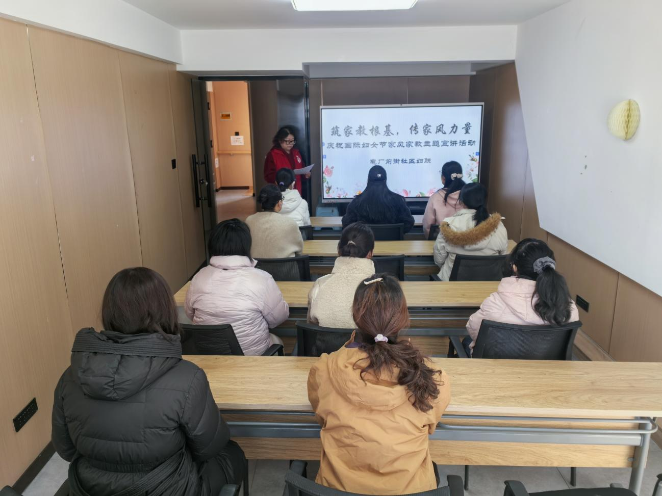 锡林郭勒北路街道电厂前街社区妇联以“筑家教根基,传家风力量”为主题,组织开展家风家教主题宣讲活动。辖区优秀巾帼志愿者结合自身家庭经历与基层服务感悟,用朴实真挚的语言,围绕孝老爱亲、科学教子、勤俭持家、邻里互助、廉洁齐家等内容,分享家风故事、传授家教方法,引导妇女发挥在家庭建设中的独特作用,以家庭“小气候”温润社区“大文明”。此次活动将家风宣讲与妇女节纪念有机融合,既传递节日关怀,又厚植文明根基。