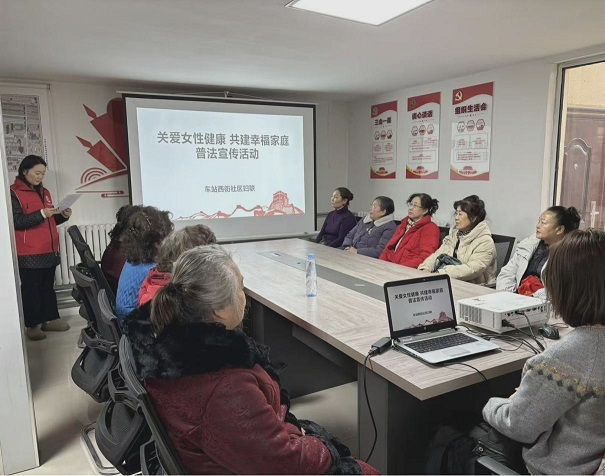 锡林郭勒北路街道车站西街社区妇联开展“关爱女性健康 共建幸福家庭”普法宣传活动,将法治知识与健康关怀送到妇女群众身边。工作人员围绕《中华人民共和国妇女权益保障法》《中华人民共和国母婴保健法》等法律法规,结合妇女卫生保健、“两癌”筛查、心理健康等内容,用通俗易懂的语言讲解法律知识与维权途径,帮助妇女知法懂法、守法用法,提升健康保护意识和法治观念。