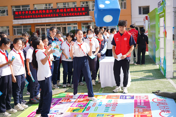 活动中,通过生态环境保护宣讲和主题打卡小游戏向学生普及垃圾分类、固体废物循环利用、铸牢中华民族共同体意识等知识。
