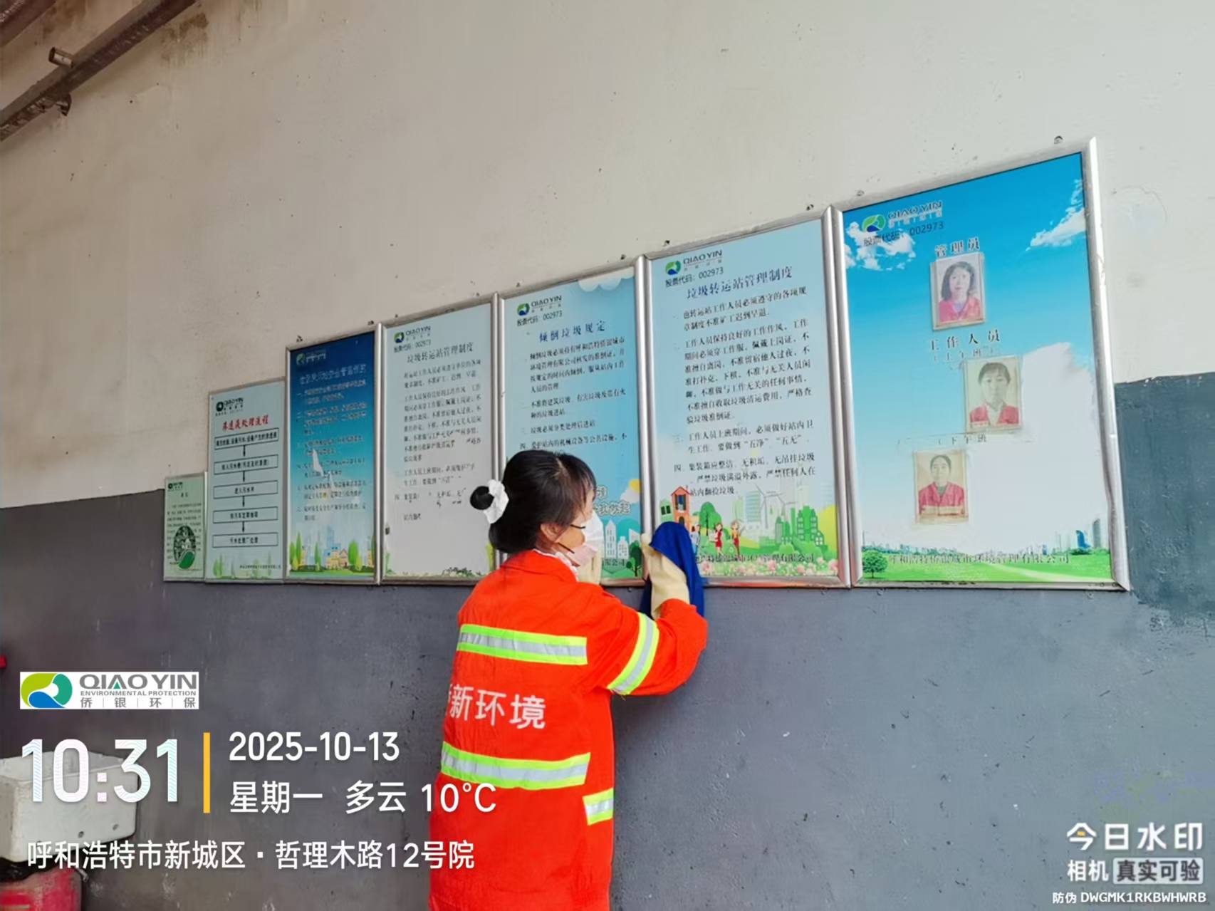 在内外精细化保洁方面,实行“随卸随清、班后彻底洗刷”的作业制度。对站内墙面、地面、压缩槽、排污沟渠等区域进行无死角冲刷,确保无残留垃圾、无污渍、无异味;在设施设备管护方面,加强对压缩设备、除臭喷淋系统、污水收集设施的日常检查与维护保养,确保设备运行平稳高效,从源头减少跑冒滴漏现象,维持站内整体环境清爽;在病媒生物防治方面,针对秋季特点,增加站内及周边区域的消杀频次,科学投放药物,有效控制蚊蝇鼠蟑等病媒生物滋生,切断疾病传播途径。