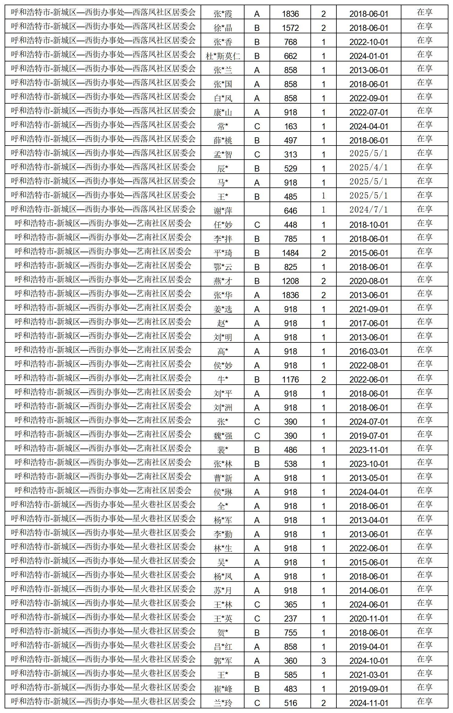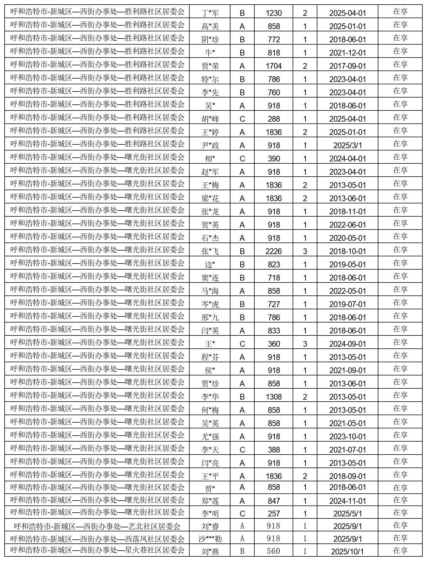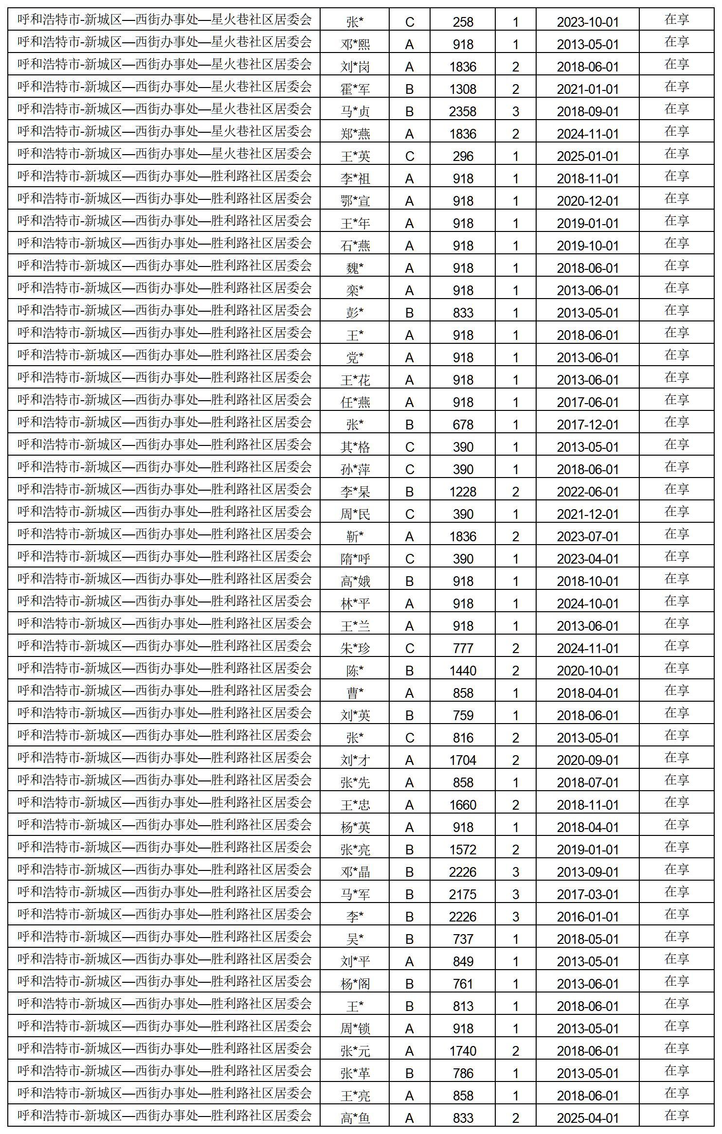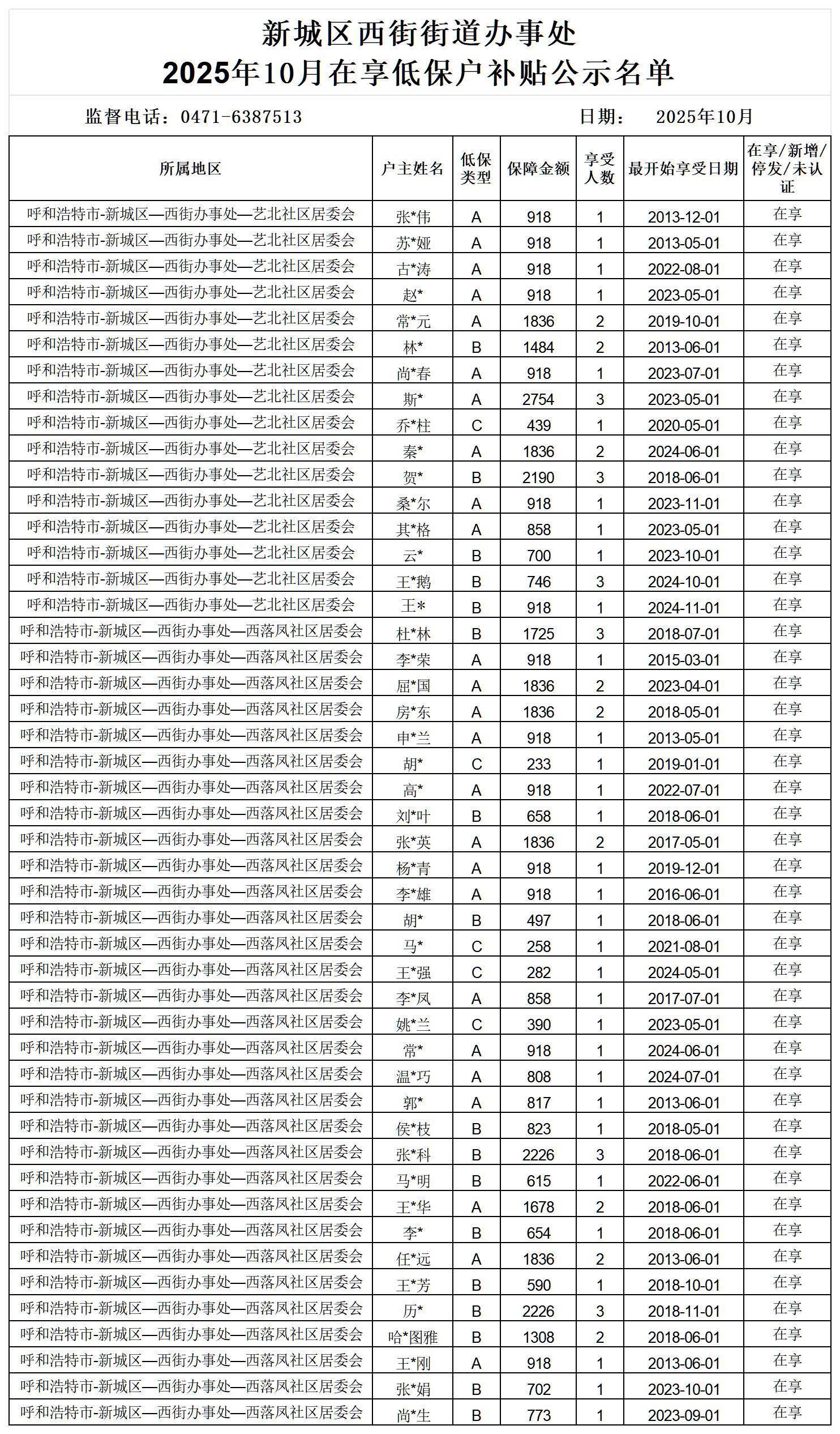 新城区西街街道办事处2025年10月最低生活保障人员补贴发放情况