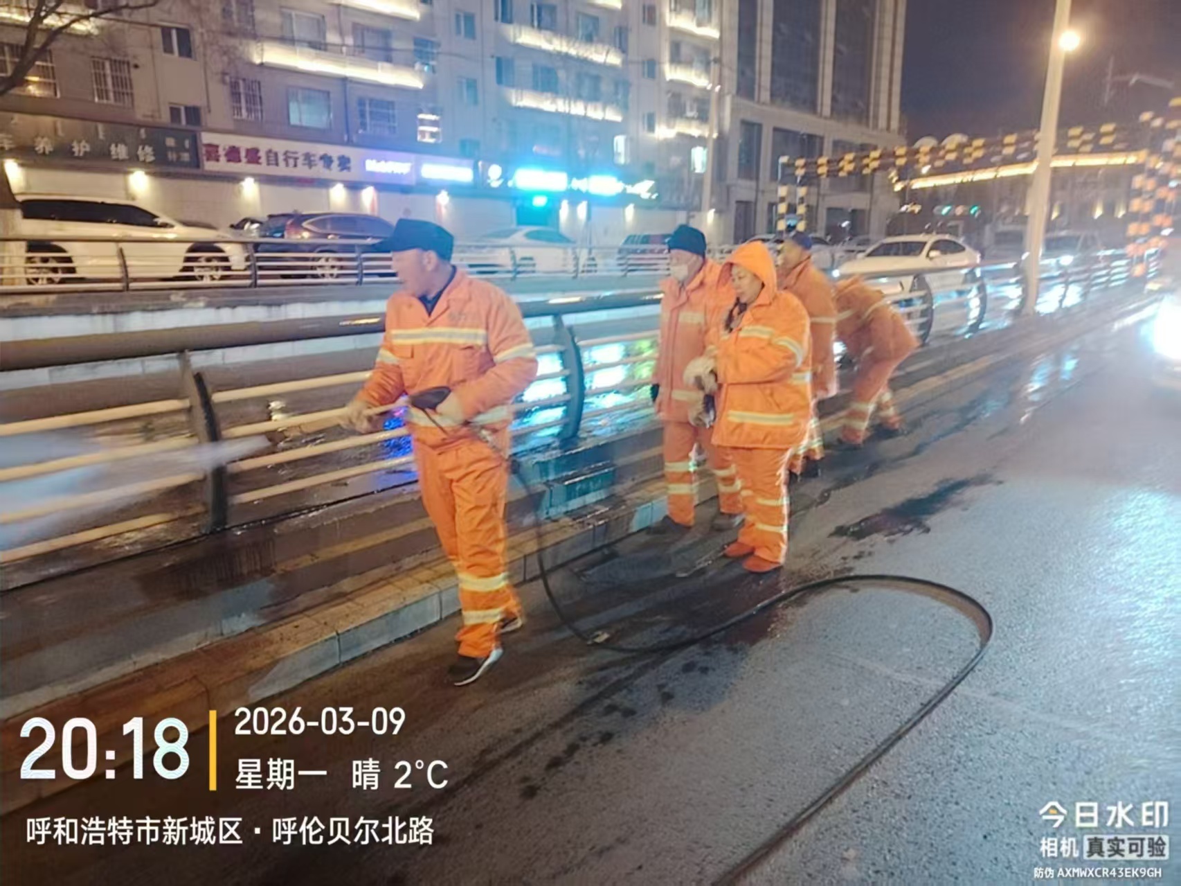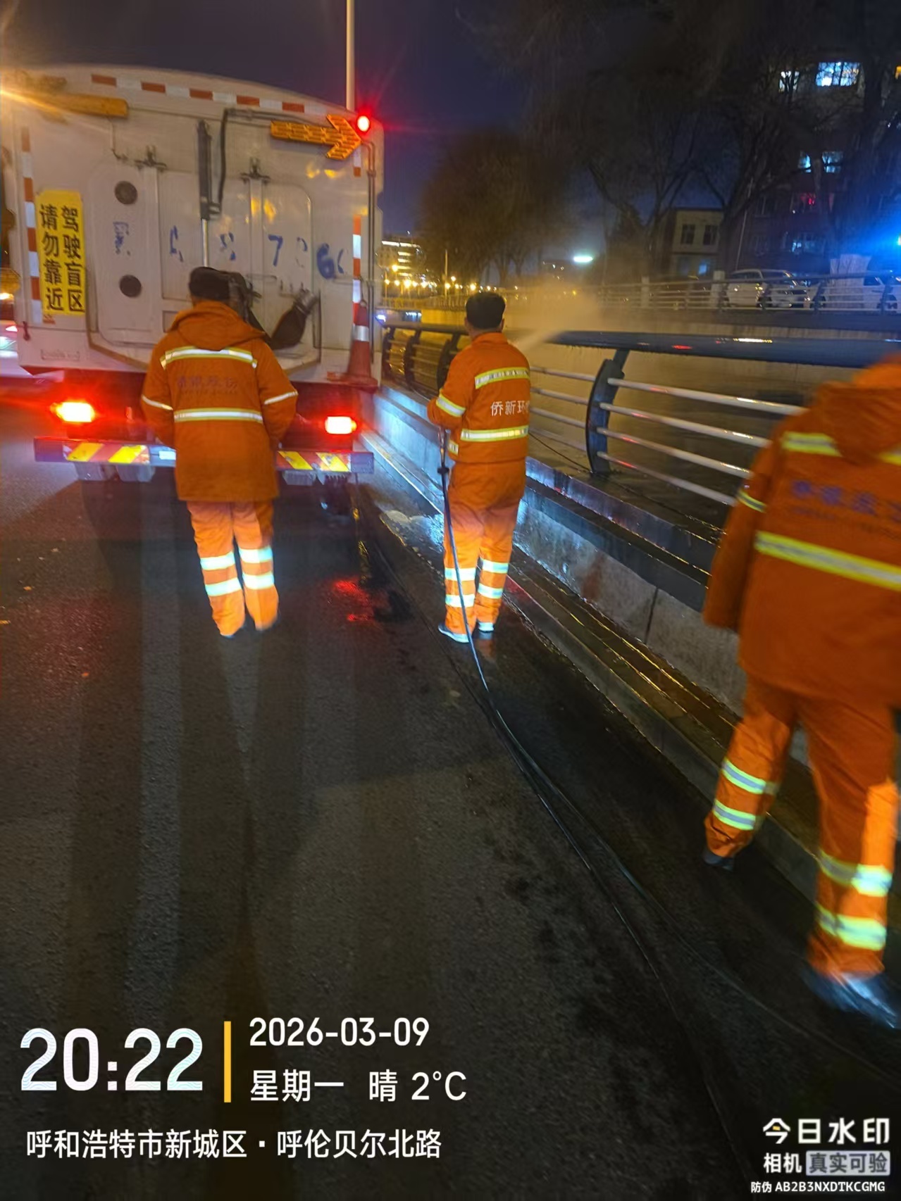 为深入落实春季环境卫生“大起底、大整治”专项行动要求,持续提升城区环境卫生品质,切实做好环卫保障服务,3月9日晚,新城区环境卫生服务中心精心部署、精准发力,组织一线保洁人员,调配高温冲洗车辆,对呼伦贝尔北路人行便道及公铁立交桥开展全方位、精细化冲洗作业,以“绣花”功夫擦亮城市容颜,用实干担当守护群众出行环境。